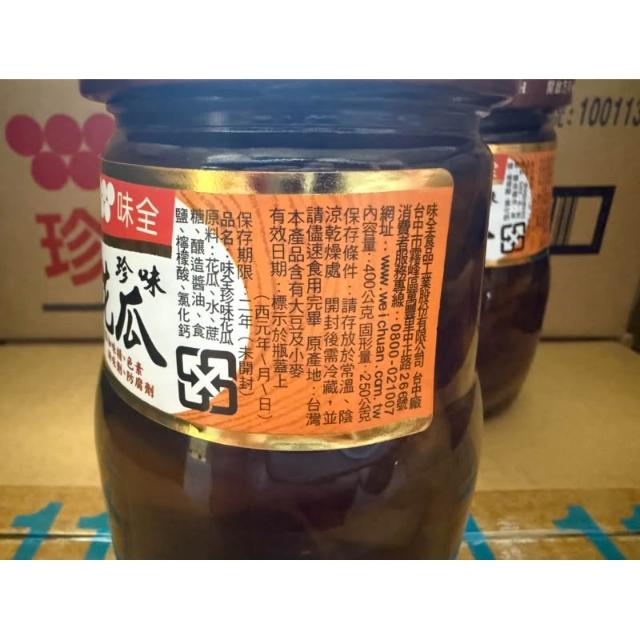 味全《即期特價》味全珍味花瓜400g(超取限重一單最多8瓶,宅配限重一單最多24瓶)