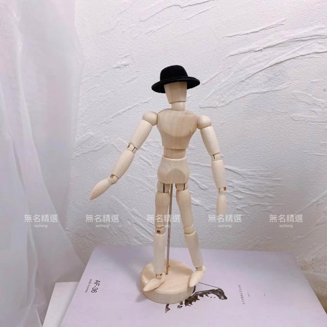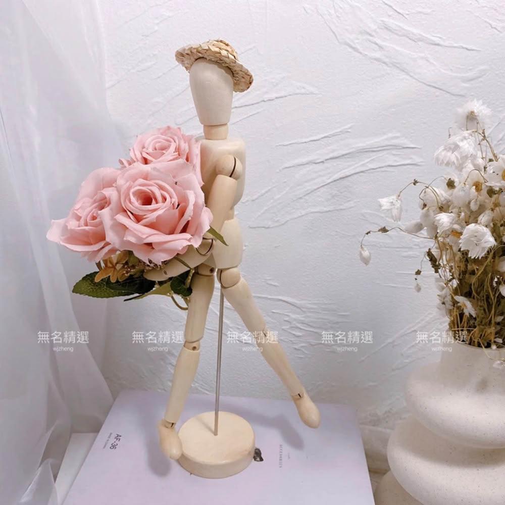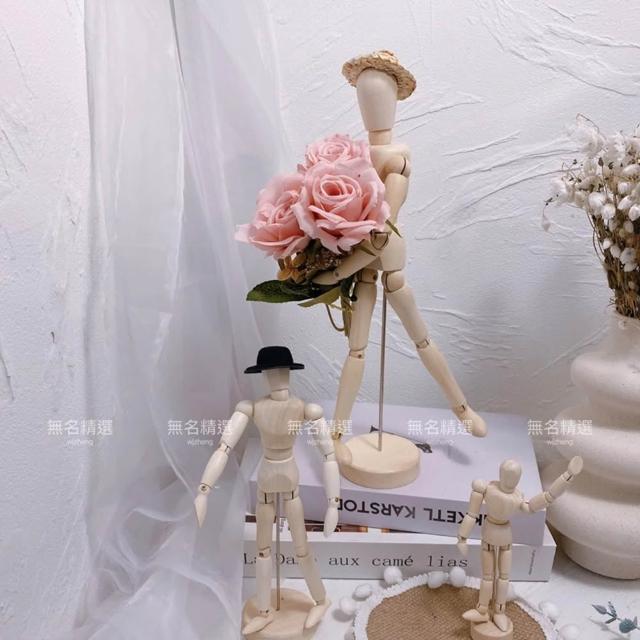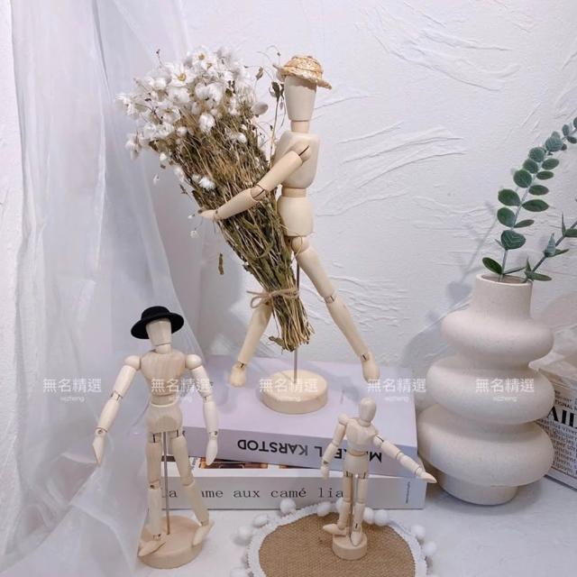多尺寸/送草帽 木頭人 關節可動 關節人 木偶的拍照道具 乾燥花架 木質 人偶 素描木人 居家裝飾 奶油風