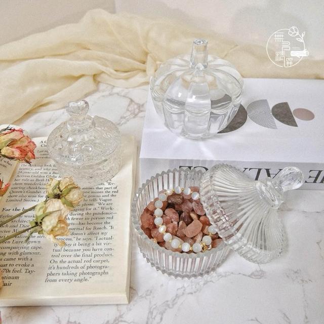 日系玻璃擺飾碗 三款造型|南瓜月光・雕花寶盒・竪條之光|文青風 水晶收納 消磁小物 飾