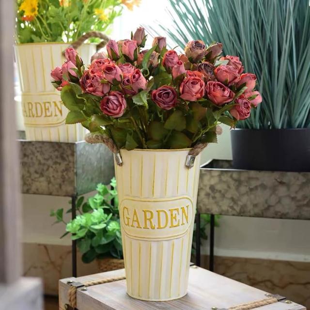 復古仿舊麻繩鐵桶盆器 鐵皮桶 乾燥花盆 花瓶 插花 桶子 花桶 花器 收納桶 拍照道具 居家裝飾品 盆器