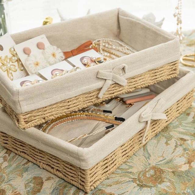 手工 編織籃 竹籃 飾品展示 髮圈 擺攤 雜物收納籃 拍照道具 桌面收納 化妝品收納盒 家用抽屜玄關仿藤編織籃筐
