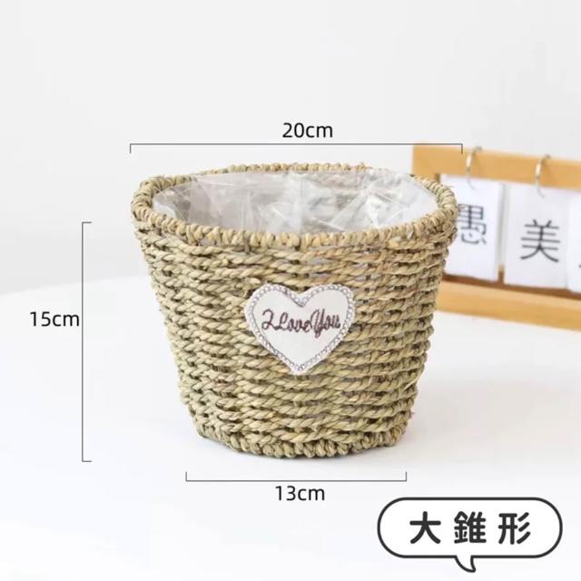 防水編織藍 手工竹籃 編織花盆 柳編 草編 花籃 藤編 插花籃 多肉盆器 田園 佈置 盆器 乾燥花 永生花瓶 綠蘿