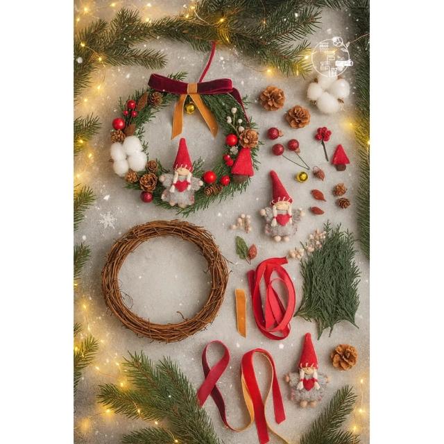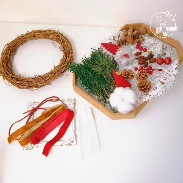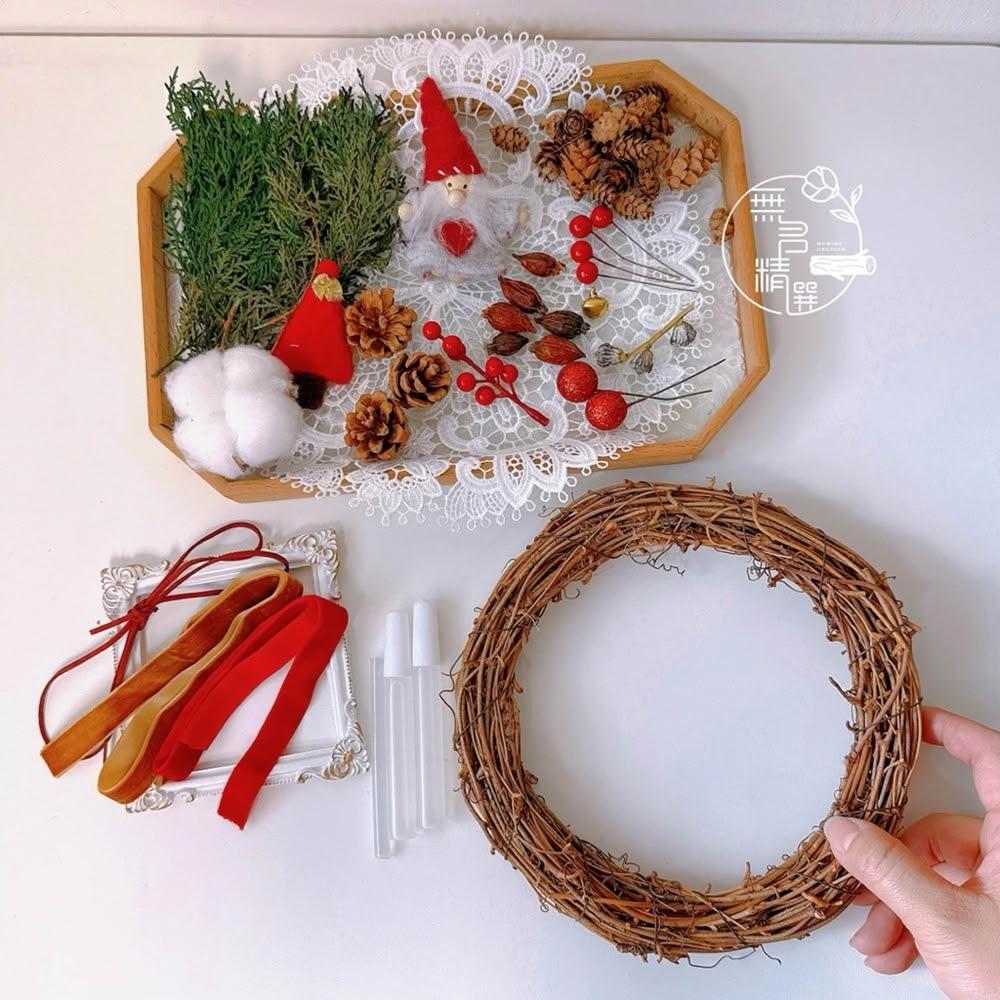 聖誕節花圈材料包|DIY手作藤圈聖誕掛飾套組|聖誕老人裝飾松果乾燥花素材包 耶誕花圈/親子共樂、課程教學、節慶佈置