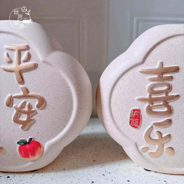 平安喜樂浮雕花瓶 噴砂 陶瓷 中式花瓶 新年佈置 過年佈置 桌面擺件 花瓶 梅花花瓶 插花 喬遷禮物 花店材料
