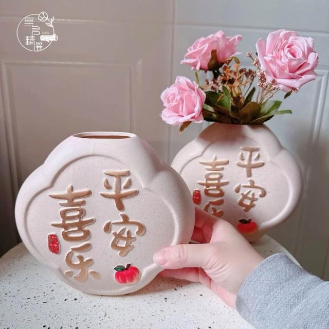 平安喜樂浮雕花瓶 噴砂 陶瓷 中式花瓶 新年佈置 過年佈置 桌面擺件 花瓶 梅花花瓶 插花 喬遷禮物 花店材料