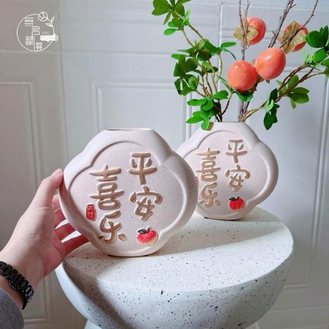 平安喜樂浮雕花瓶 噴砂 陶瓷 中式花瓶 新年佈置 過年佈置 桌面擺件 花瓶 梅花花瓶 插花 喬遷禮物 花店材料