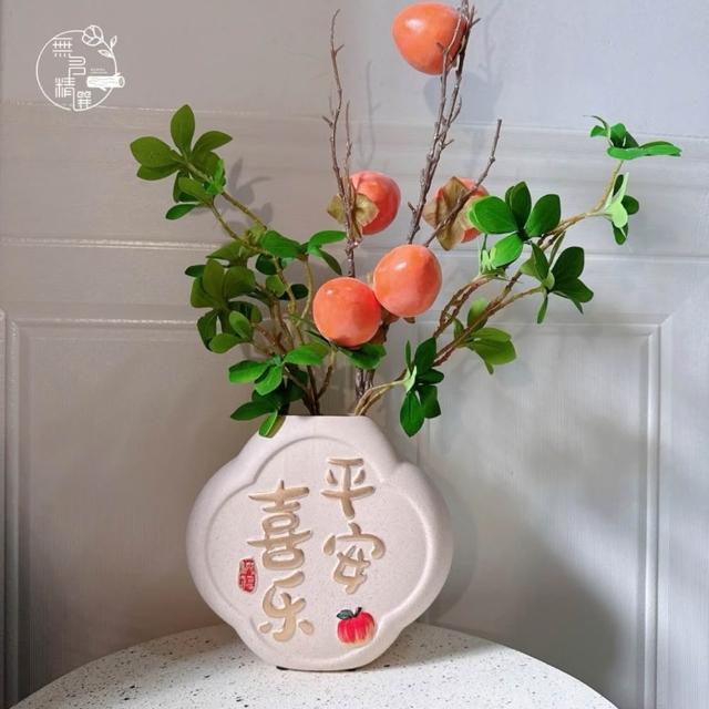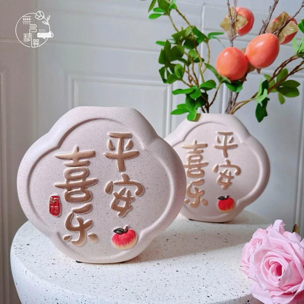 平安喜樂浮雕花瓶 噴砂 陶瓷 中式花瓶 新年佈置 過年佈置 桌面擺件 花瓶 梅花花瓶 插花 喬遷禮物 花店材料