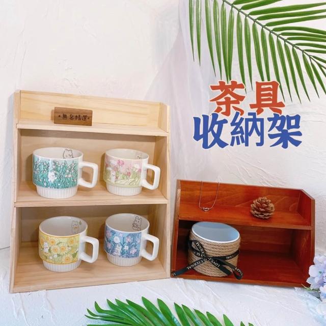 木質 茶具收納 杯子收納 保養品 化妝品 收納 復古裝飾 桌面置物架 梯形 展示架 陳列架 雜物收納 木櫃 層架