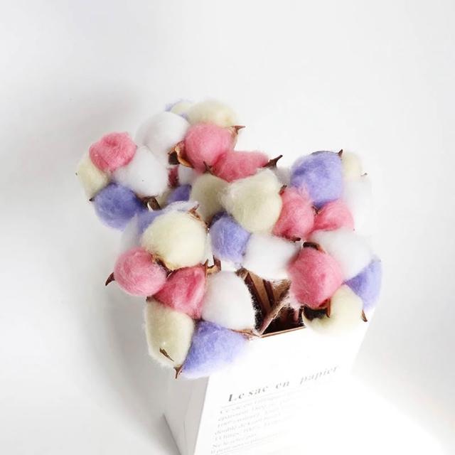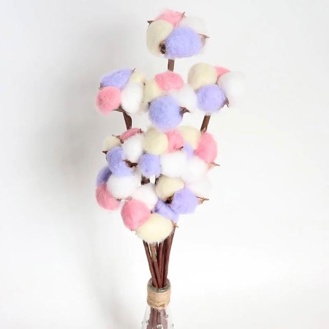 棉花糖 有桿 彩色 木棉花 天然 棉花 乾燥花 花束材料 插花diy材料配件 裝飾 木棉花 永生花 玻璃罩材料