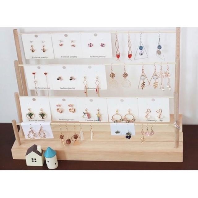 四排原木耳環展示架 大容量收納