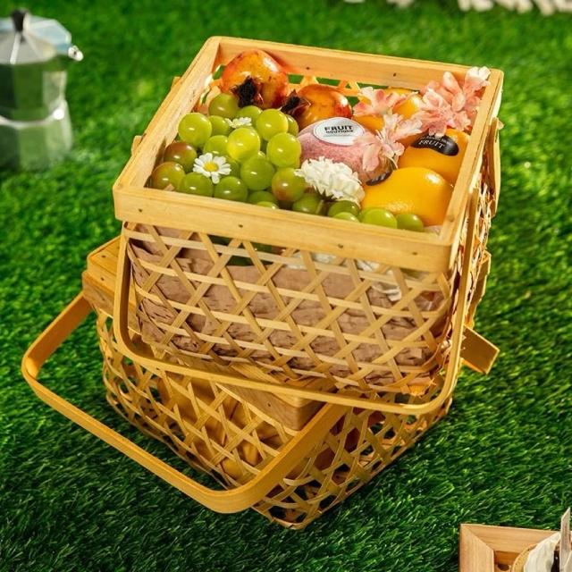有蓋手提竹籃|手工製作 端午節禮盒包裝 |商用展示手提籃 野餐籃|公版禮盒 彌月禮盒 提籃 編織籃
