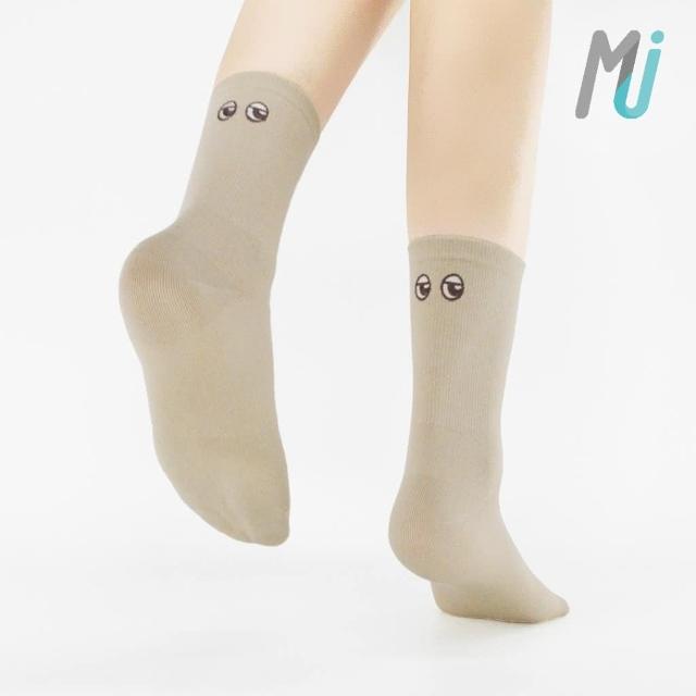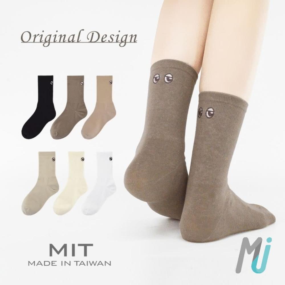 《MJ襪子》 原創設計款 刺繡眼睛系列 經典潮流襪 文青襪 大地色 女襪 純棉 台灣製MIT MP058