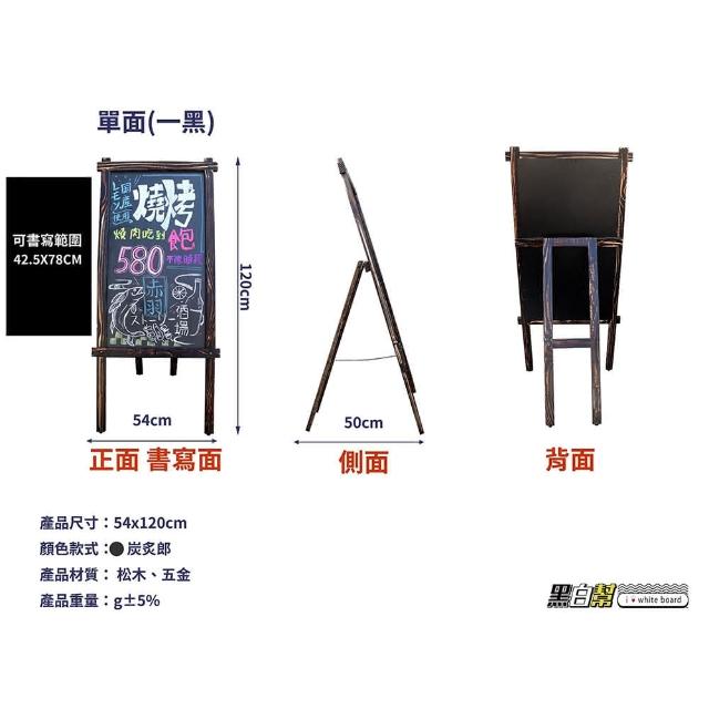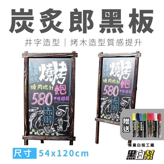 黑白幫烤木炭炙郎黑板架 54x120cm+彩繪筆一組(黑板立牌 落地黑板 餐廳黑板 )