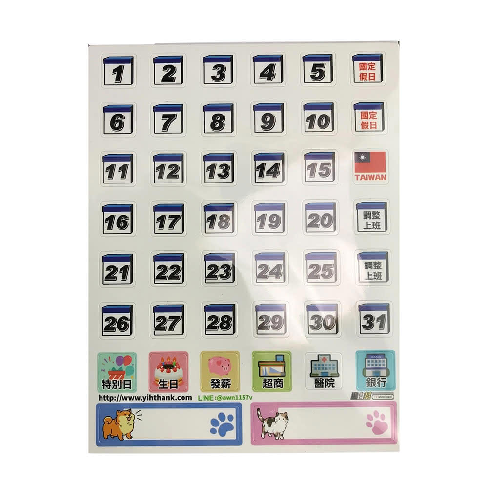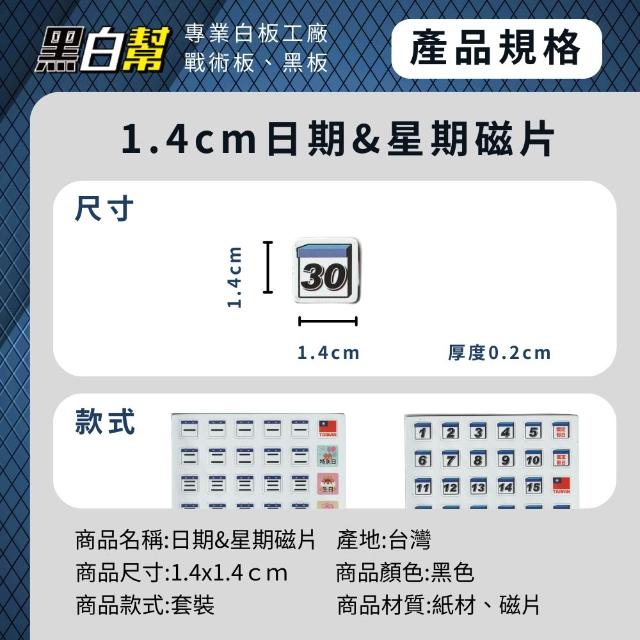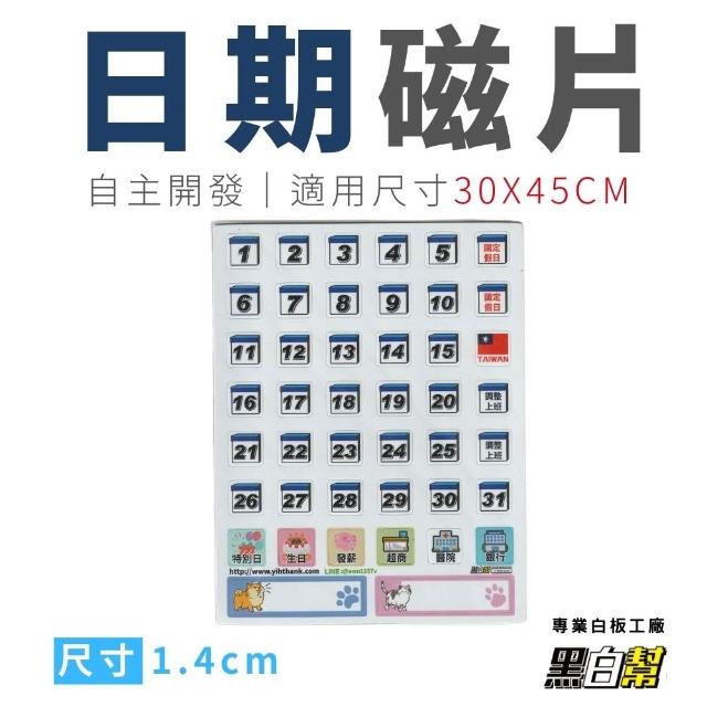 黑白幫1.4cm 日期磁片(適用於30x45月份白板使用)