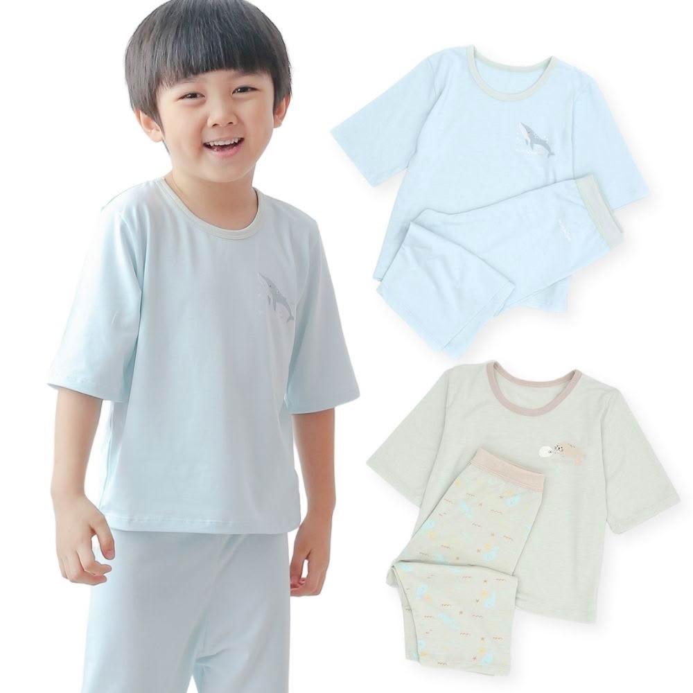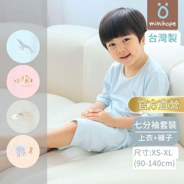 minihope寬版七分居家套裝-沉靜海洋 男女童(台灣製 居家服 居家套裝 七分袖 七分褲)