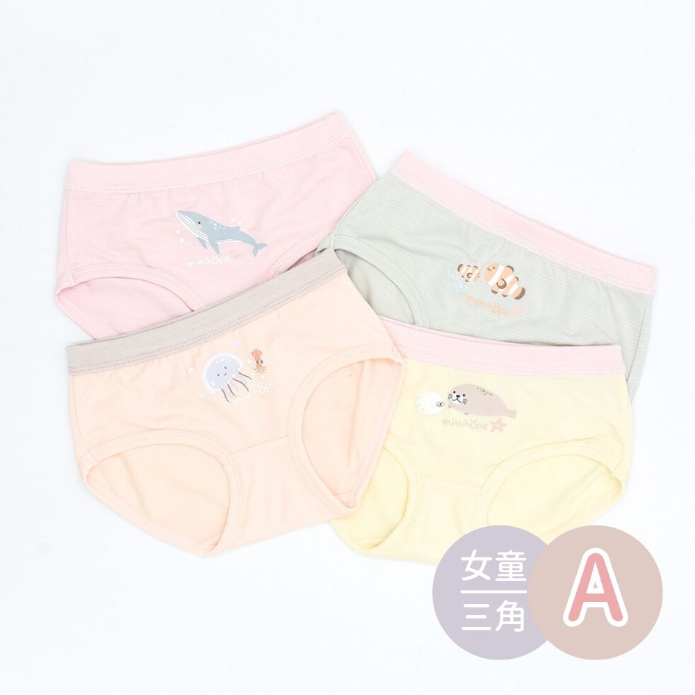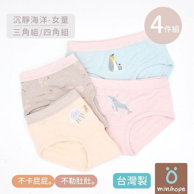 minihope女童內褲4件組 三角四角 不卡屁屁 不勒肚肚(台灣製 兒童內褲 三角褲 平口褲)