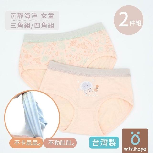 minihope女童內褲2件組 三角四角 不卡屁屁 不勒肚肚(台灣製 兒童內褲 三角褲 平口褲)