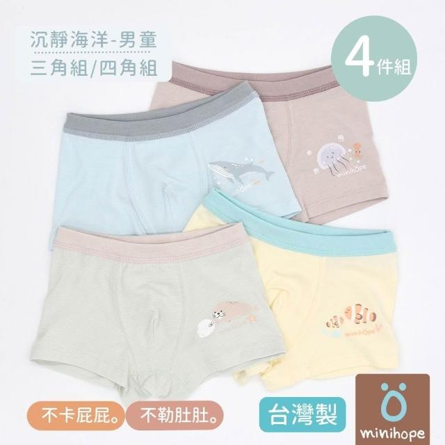 minihope男童內褲4件組 三角四角 不卡屁屁 不勒肚肚(台灣製 兒童內褲 三角褲 平口褲)
