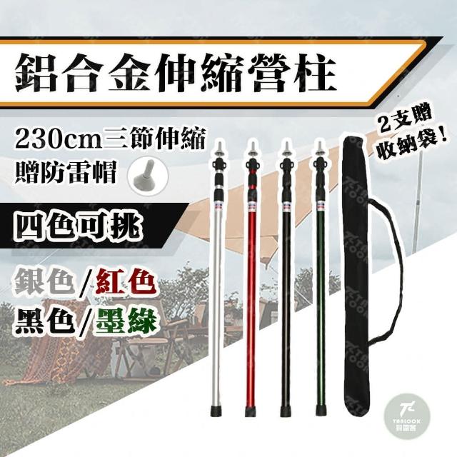 Tanlook鋁合金伸縮營柱 露營天幕桿 2.3米伸縮營柱2入組 附收納袋(三節伸縮調節 抗風穩固 輕便好攜帶)