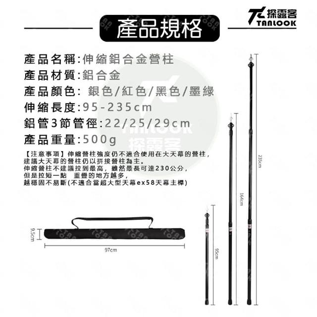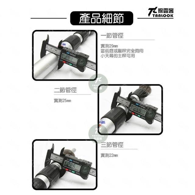 Tanlook鋁合金伸縮營柱 露營天幕桿 2.3米伸縮營柱2入組 附收納袋(三節伸縮調節 抗風穩固 輕便好攜帶)