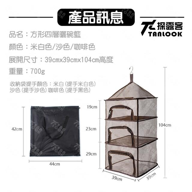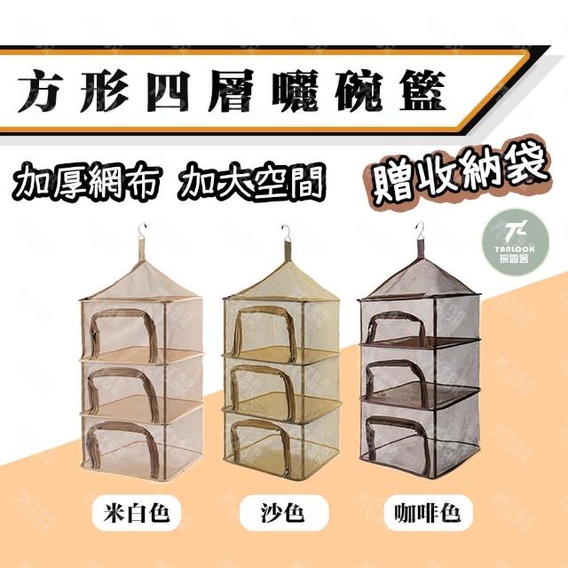 Tanlook戶外露營四層方型曬網籃(曬碗籃 餐具吊籃 廚具曬網 收納籃 晾乾網 -三色任選)