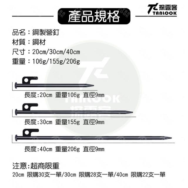 Tanlook鋼製加粗營釘20cm-10入組(地釘 帳篷釘 不鏽鋼營釘 大黑釘 天幕營釘)