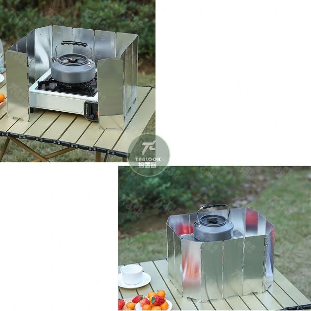 露營鋁合金摺疊擋風板-10片附收納袋(野炊 遮風板 擋風板 防風板 隔風板 爐具擋風板)