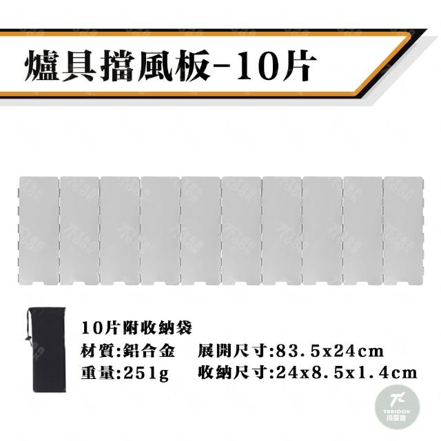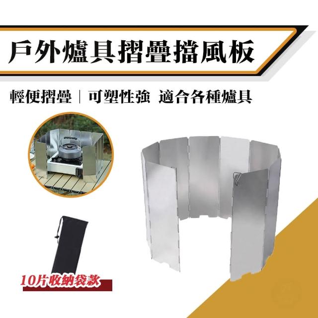 露營鋁合金摺疊擋風板-10片附收納袋(野炊 遮風板 擋風板 防風板 隔風板 爐具擋風板)
