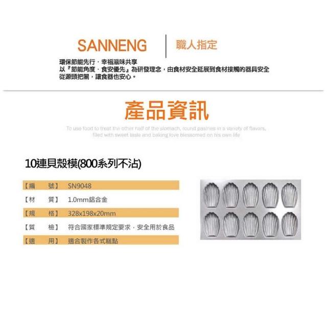 SANNENG 三能SN9048 10連貝殼模/800系列不沾(瑪德蓮蛋糕模 瑪德琳模具 瑪德蓮烤模 貝殼模) 烘焙用具 不沾烤模 不沾塗層 烤盤 模具 點心模 烘焙模具 蛋糕 西點 甜點 小點心 餅乾 烘焙 麵包 烘焙好物市集