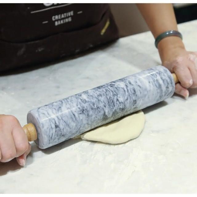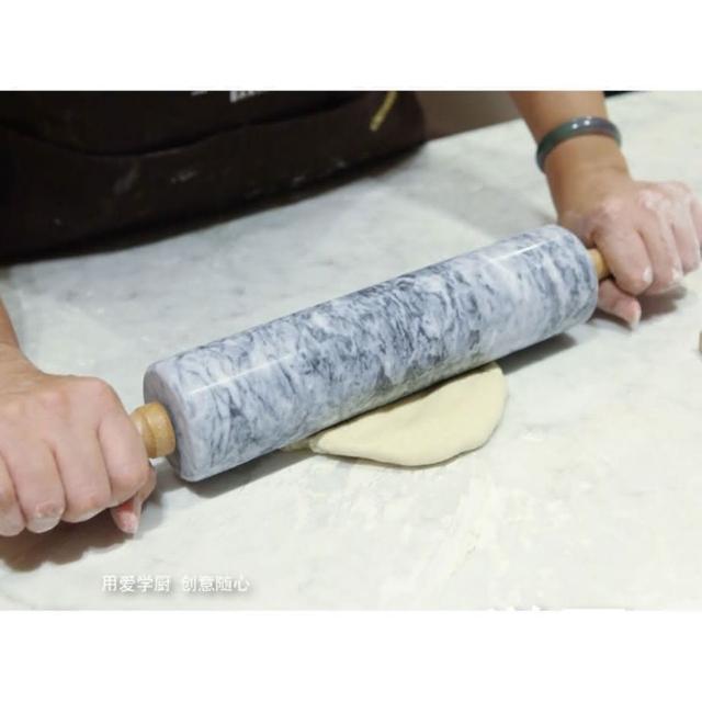 Chefmade 學廚WK9159 大理石擀麵棍 總長46cm ( 天然大理石 不粘天然大理石 走錘擀麵杖 實木滾軸 桿麵棍 Chefmade) 桿麵杖 揉麵棍 烘焙用具 西點 甜點 小點心 餅乾 烘焙 麵包 Chefmade 學廚 烘焙好物市集