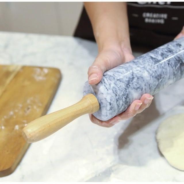 Chefmade 學廚WK9159 大理石擀麵棍 總長46cm ( 天然大理石 不粘天然大理石 走錘擀麵杖 實木滾軸 桿麵棍 Chefmade) 桿麵杖 揉麵棍 烘焙用具 西點 甜點 小點心 餅乾 烘焙 麵包 Chefmade 學廚 烘焙好物市集