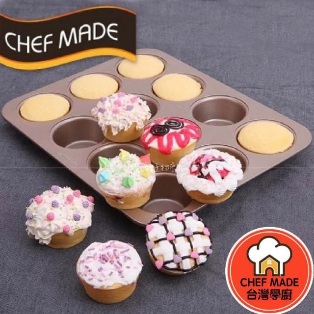 Chefmade 學廚< WK9067 12連不沾馬芬蛋糕模 > 杯子蛋糕烤盤 圓形烤模 大號迷你小蛋糕模 Chefmade 烘焙模具