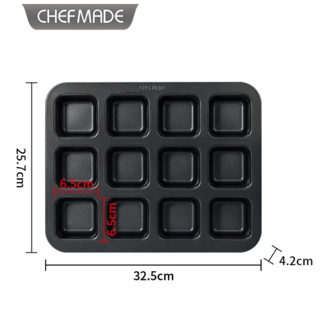 Chefmade 學廚WK9873 黑色12連不沾方形烤模(麵包烤模 蛋糕烤模蛋糕模 布朗尼烤模 烘焙用具 麵包蛋糕烤模 Chefmade) 烘焙用具 不沾烤模 不沾塗層 烤盤 模具 點心模 烘焙模具 蛋糕 西點 甜點 小點心 餅乾 烘焙 麵包 烘焙好物市集