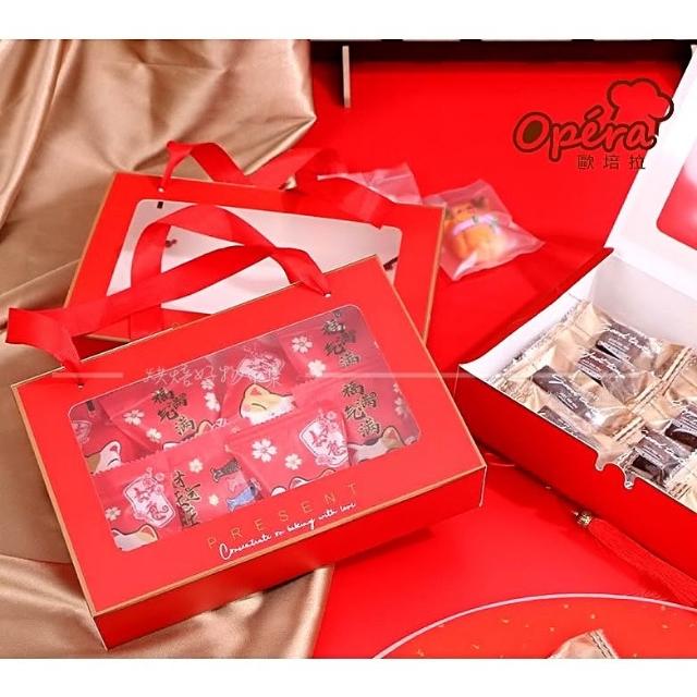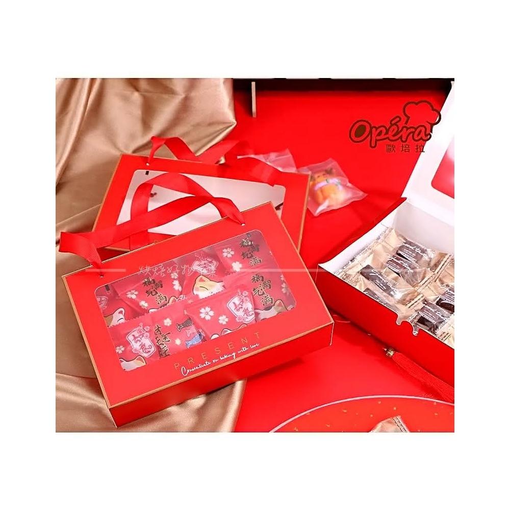 OPERA(烘焙好物市集) 紅色開窗手提盒 新年 餅乾 包裝盒 雪媚娘盒 月餅盒 新春 包裝 禮盒 牛軋糖盒 抽屉式 紙盒 包裝盒 烘焙 批發 盒子 外帶盒 手提盒 手提袋 DIY手作 烘焙用具 包裝材料 中式糕點