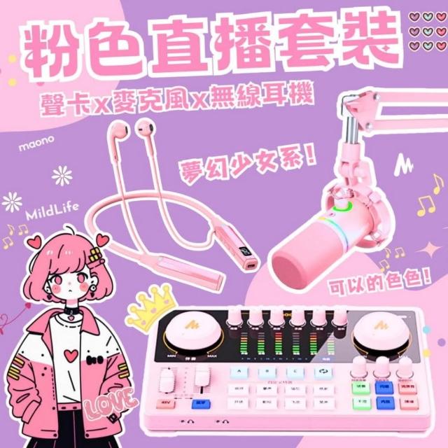 MAONO閃克 粉色直播套裝(聲卡 麥克風 耳機 補光燈 音效卡 混音器 調聲器 調聲台 直播設備 主播專用)