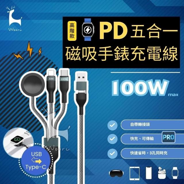 PD 100W 五合一磁吸手錶充電線 (USB+Type-C+Lightning+watch)