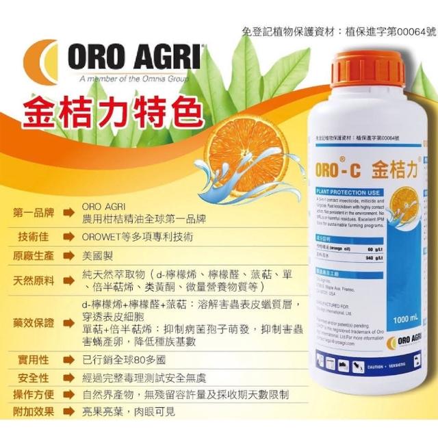欣榮園藝資材行全館599免運 金桔力 100ml 柑橘精油 美國ORO AGRI 蚜蟲 介殼蟲 紅蜘蛛 白粉病 露菌病
