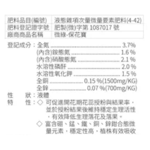 欣榮園藝資材行保花寶 促花保果 降低生理落花落果 微量元素 特殊氨基酸 提高著果率 提高抗逆性