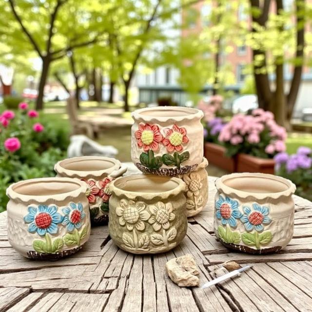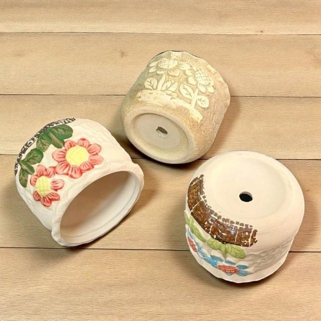欣榮園藝資材行雙花浮雕陶盆 隨機出貨 陶瓷盆 破損包賠 有排水孔 瓷盆 花盆 浮雕盆 多肉 觀葉 小品盆器 簡約