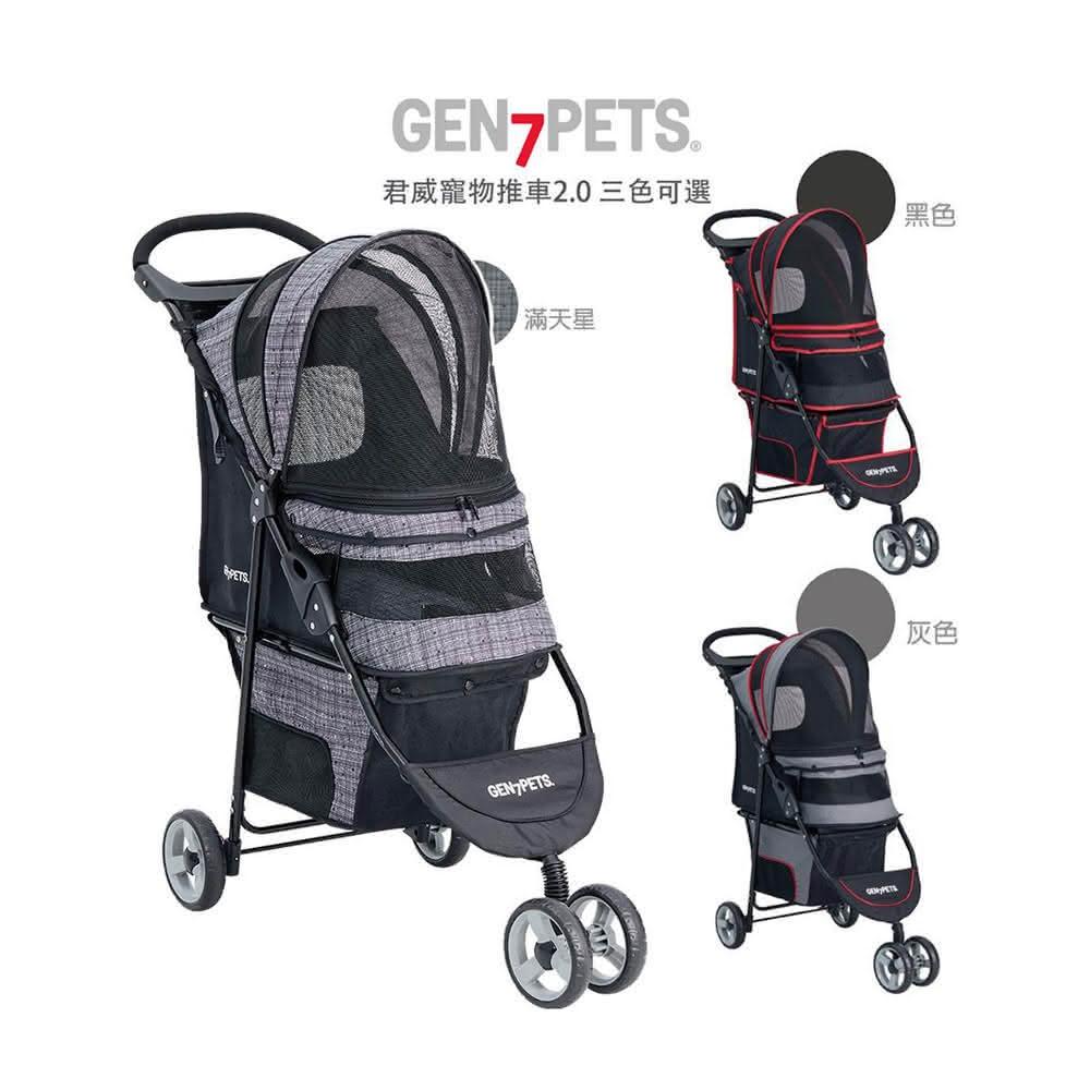Gen7pets君威收折式寵物手推車 適合11公斤(灰色/黑色/滿天星 車體輕巧/寵物推車)