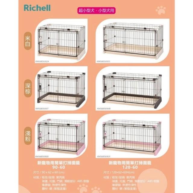 Richell 利其爾日本寵物狗籠狗屋 簡單打掃圍欄圍籠(120-60 三色)