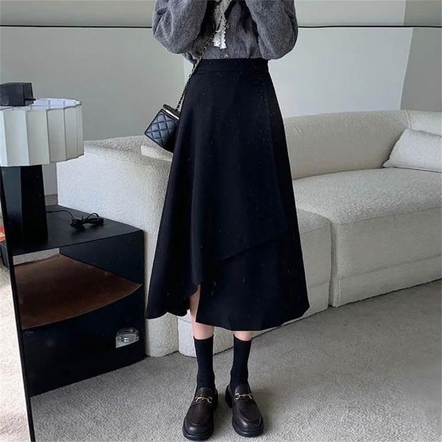 高腰中長裙 氣質遮胯顯瘦A字裙高腰傘裙大擺裙(大尺碼半身裙)