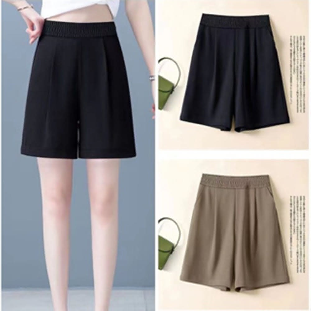 冰絲闊腳短褲女夏新款休閑五分褲(大尺碼短褲 休閒褲)