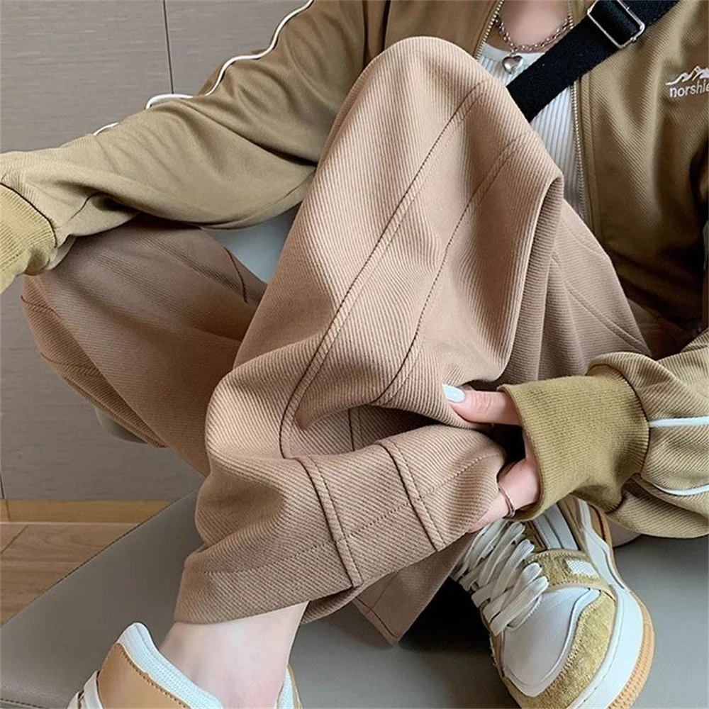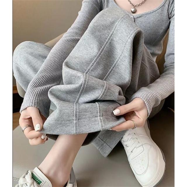 運動褲子女新款高腰顯瘦休閑衛褲寬鬆直筒闊腿褲(大尺碼長褲 休閒長褲)