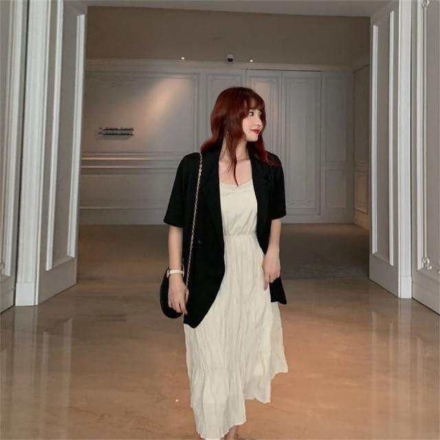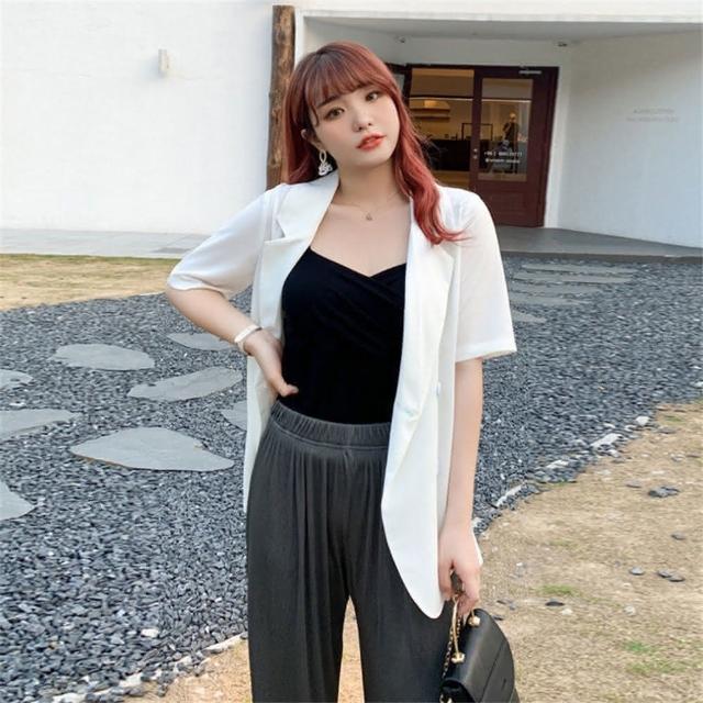 特大碼薄款小西裝女夏季寬鬆休閑短袖外套職場西服上衣(大尺碼西裝外套 休閒外套)
