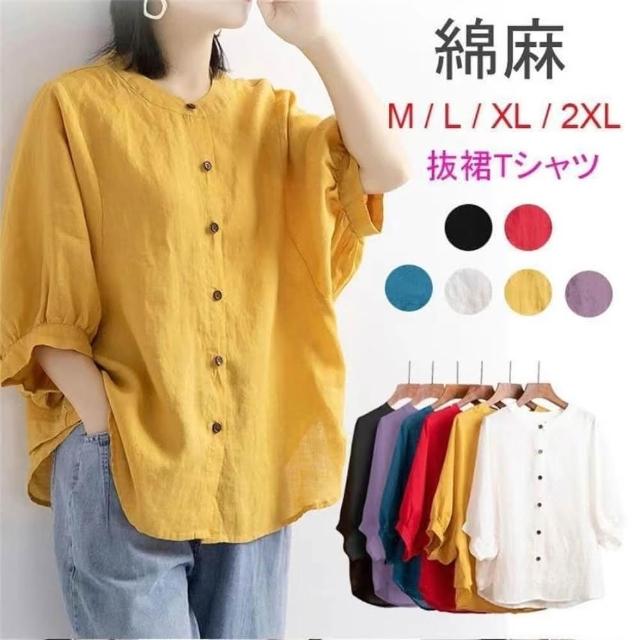 夏季棉麻襯衫女裝燈籠袖復古文藝上衣寬鬆顯瘦中袖大碼襯衣女(棉麻襯衫 夏季襯衫)