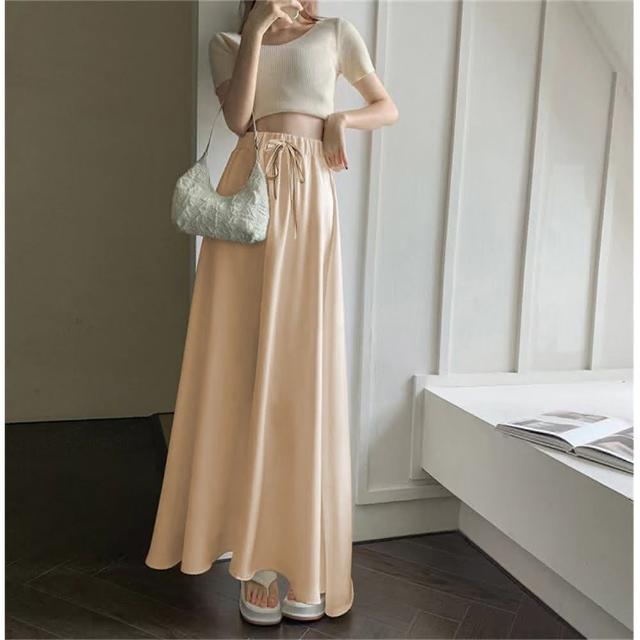 大尺碼馬面裙醋酸冰絲緞面半身長裙女夏季新款高腰顯瘦垂感氣質大擺傘裙(韓風大碼)