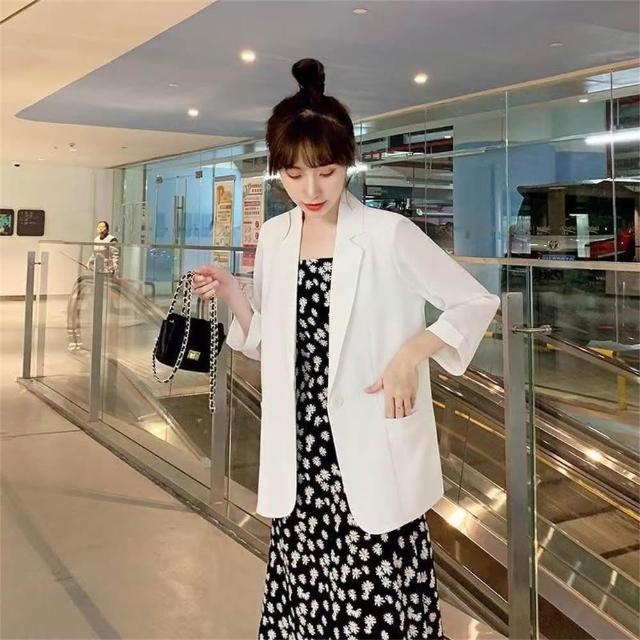 西裝外套小西服雪紡單層薄款寬鬆垂感七分袖氣質洋氣西服(韓風大碼)