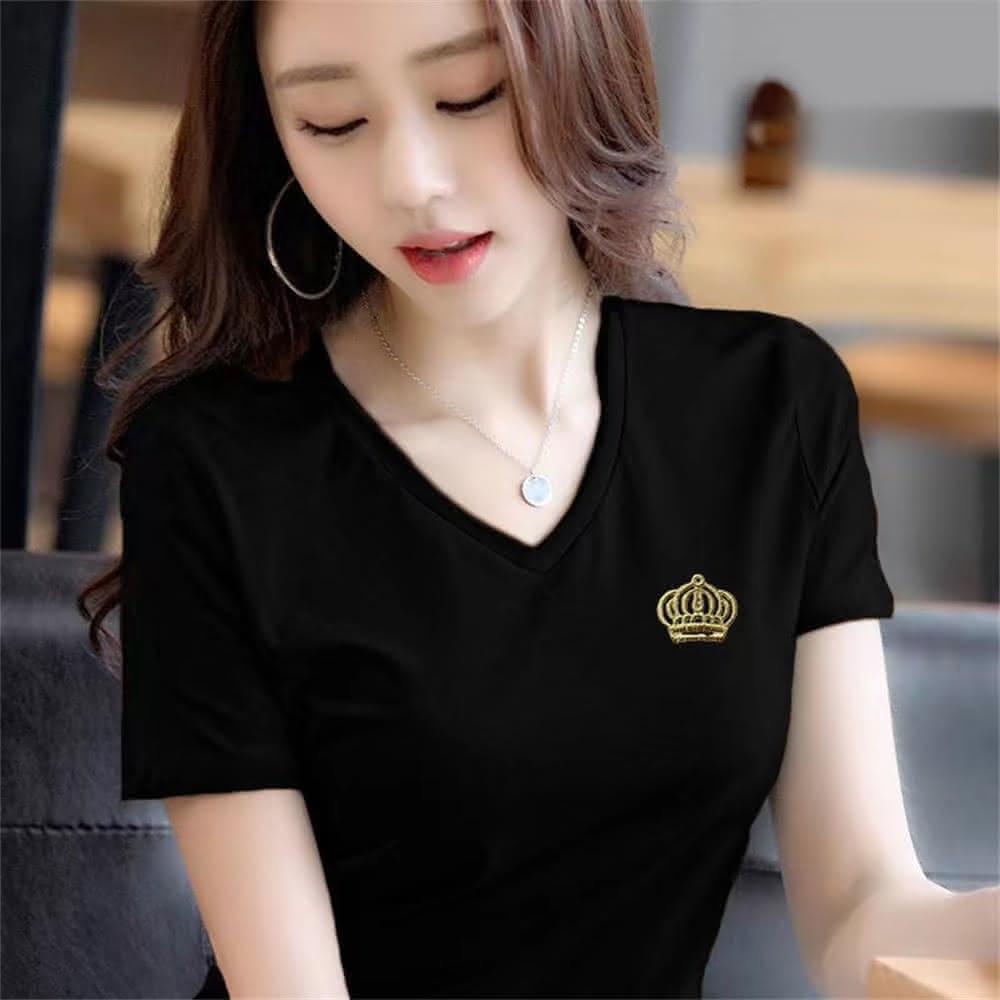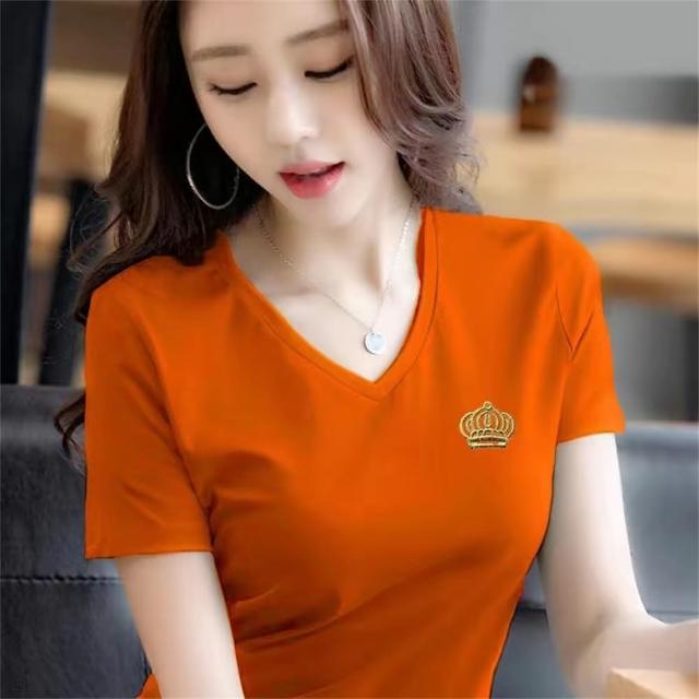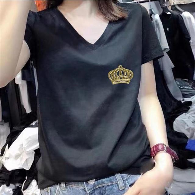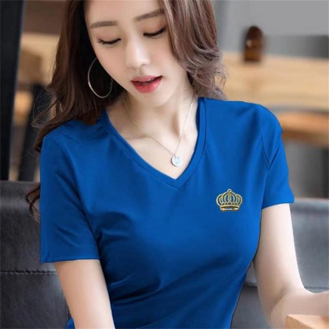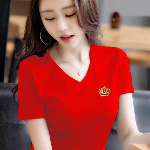 大尺碼T恤純棉V領短袖T恤女夏季新款潮百搭上衣女(韓風大碼)