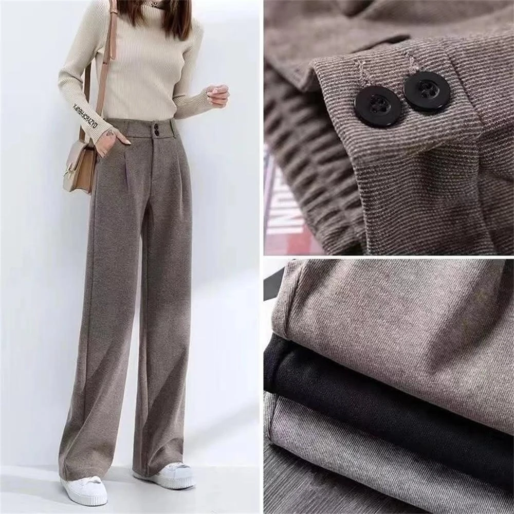 毛呢闊腿褲子女秋冬季直筒褲小個子矮個子高腰垂感直筒休閑褲子女